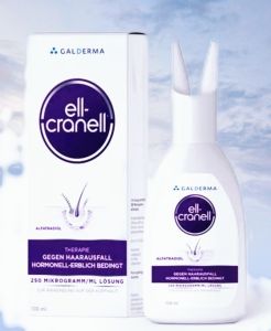 Причиною випадання волосся є чоловічий гормон тестостерон, який відповідає за випадання волосся через підвищену чутливість коренів волосся. Наш організм виробляє тестостерон і перетворює його на ДГТ (= дигідротестостерон). Він виконує багато важливих функцій в організмі. Однак ДГТ також чинить прямий вплив на коріння волосся, і у людей зі спадковою гіперчутливістю до ДГТ коріння волосся ушкоджується. Особливо якщо концентрація ДГТ занадто висока, коріння волосся з часом атрофується. Уражене волосся передчасно випадає і більше не відростає повністю. Як діє Елль Кранелль з альфарадіолом? Завдяки активному інгредієнту альфарадіолу Ell-Cranell знижує перетворення тестостерону в ДГТ, який пошкоджує коріння волосся безпосередньо в шкірі. Це захищає надчутливе коріння волосся і дозволяє волоссю знову стати сильним. Клінічні дослідження доводять ефективність Елль-Кранелла. Елль-Кранелль з альфарадіолом діє лише локально на шкіру голови та не впливає на весь організм. Таким чином, Елл-Кранелл дуже добре переноситься навіть при тривалому застосуванні.