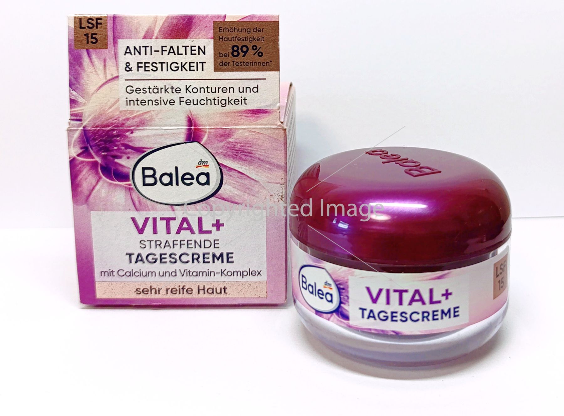 Balea Vital+ Straffende Tagescreme LSF15 -зміцнюючий денний крем Vital+ від Balea здатний підвищити опірність шкіри, зміцнити структуру шкіри та зменшити глибину зморшок за допомогою комбінації активних інгредієнтів, що складаються з вітамінно-пептидного комплексу, кальцію та Vitacell>