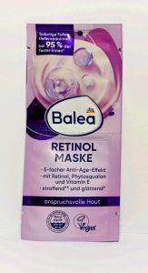 Маска Balea Retinol з комплексом активних інгредієнтів ретинолу, рослинного сквалану та вітаміну Е має п'ятикратну дію проти ознак старіння шкіри.