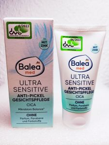 Догляду за обличчям проти прищів Balea MED Ultra Sensitive спеціально розроблено для чутливої, забрудненої шкіри. Комбінація активних інгредієнтів ефективно допомагає при акне, прищах на шкірі та одночасно надає заспокійливу дію. Формула з цинком допомагає зняти почервоніння та свербіж прищів. Комбінація цинку та пантенолу сприяє зволоженню шкіри та зникненню прищів. Алантоїн та гліциретенова кислота додатково підтримують заспокійливий шкіру ефект. Перенесення шкірою перевірено дерматологами. Рекомендовано та протестовано Німецькою асоціацією алергіків