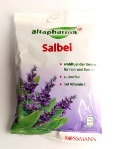 Льодяники Altapharma з шавлією без цукру містять перевірені інгредієнти рослини шавлії та додатково 13 мг вітаміну С на один льодяник. Вони благотворно впливають при лікуванні кашлю і захриплості горла, верхніх дихальних шляхів. Екстракт шавлії має антисептичну, протизапальну місцеву, протимікробну та відхаркувальну дію.