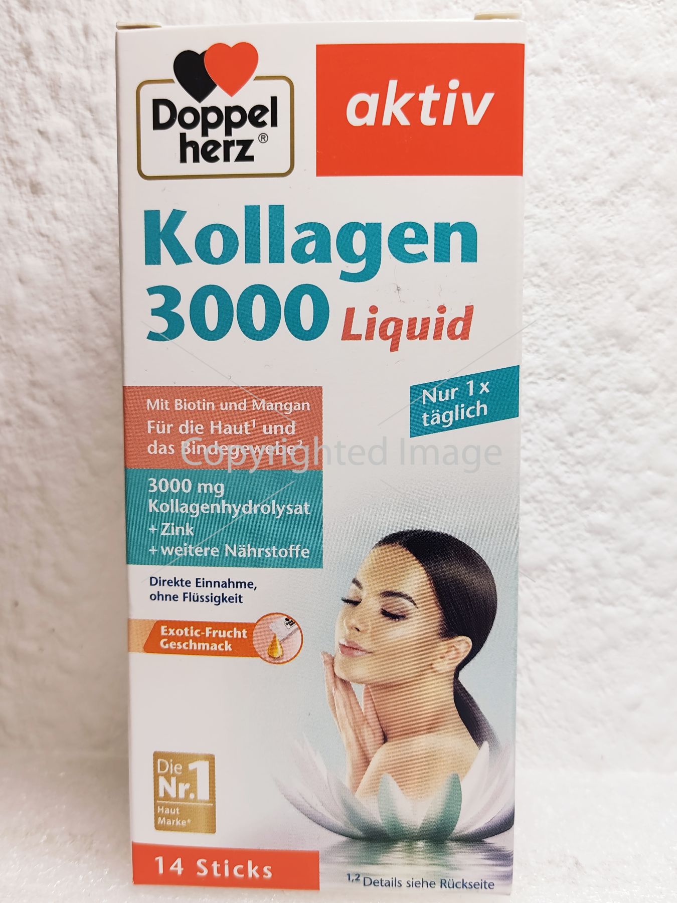 Один стик Doppelherz Collagen 3000 Liquid містить 3000 мг гідролізату колагену, а також спеціально підібрані вітаміни та мікроелементи та має приємний фруктовий смак.