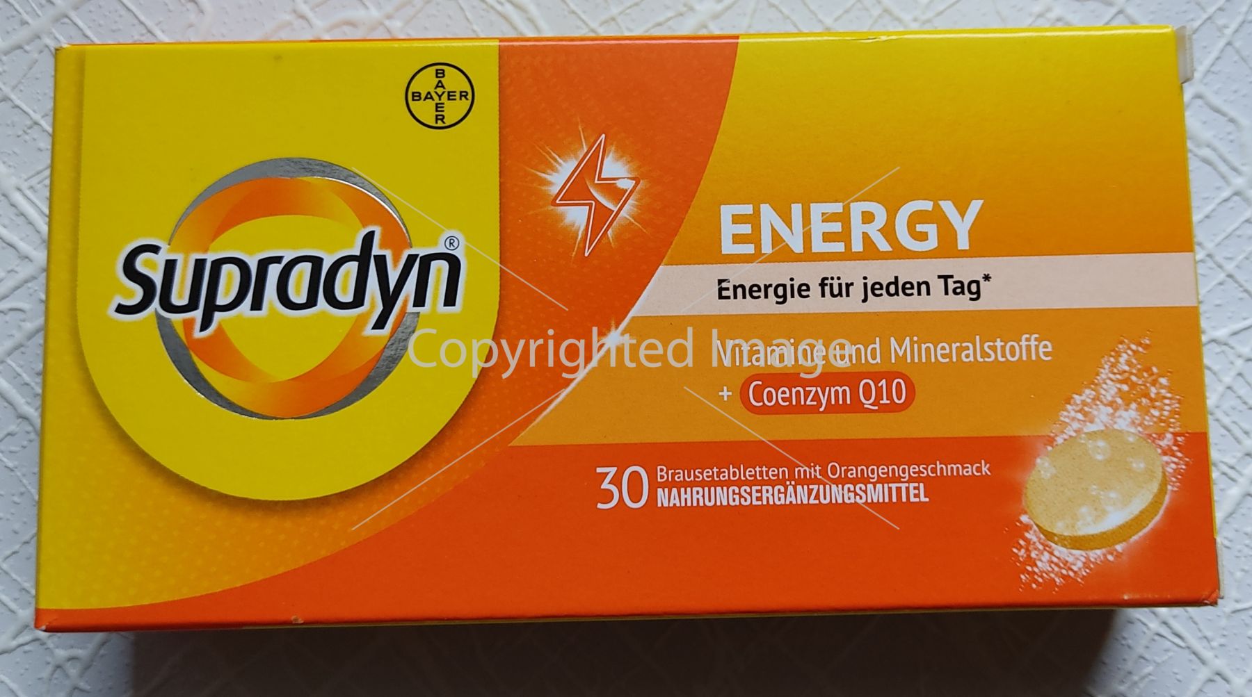 Супрадін Енерджі з Q10 мінерально-вітамінний комплекс від німецької компанії Bayer розроблений для підтримки здорового способу життя протягом усього року. СУПРАДИН ЕНЕРДЖІ Q10 випускається у вигляді шипучих пігулок з приємним цитрусовим смаком. Оскільки вітаміни надходять в організм вже в розчиненому вигляді, відбувається швидке їх всмоктування і в організму відразу з'являються сили, сонливість, підвищується працездатність. З цієї причини приймають вітаміни Supradyn ENERGY Q10 вранці або в обід під час або після їди. Після короткого часу прийому полівітамінного комплексу Супрадін Енерджі спостерігається покращення концентрації уваги, з'являється бадьорість протягом усього дня, підвищується працездатність та спостерігається загальнозміцнюючий ефект всього організму, оскільки в Супрадіні багато вітамінів групи В, а також інші важливі для організму вітаміни та мікроелементи. Також після прийому Супрадіна Energy Q10 волосся росте швидше і виглядає об'ємніше і густішим.
